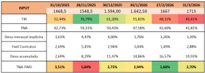 Ante la falta de detalles del acuerdo que se estaría negociando con US, crece la incertidumbre en el mercado local. Además, conflictos políticos que surgieron en armado político del oficialismo suman ruido y se intensifica la demanda de cobertura, que por ahora sigue proveyendo el BCRA. Todo esto implicó un sell off en la curva del riesgo argentino en sí. Hoy miércoles ante expectativas de novedades el MERVAL terminó cerrando firme, así como los GLOBALes pasaron a operar en terreno positivo tras haber estado -2.6% en promedio durante el día. La tasa de liquidez volvió a subir, con la caución operando al 40% desde ayer, algo que podríamos inferir tiene sentido para el oficialismo, ya que vender cobertura barata y fondeo barato, implicaría un rápido agotamiento de dichos activos. Habiendo poco comprador marginal, esta suba del fondeo generó que la curva ARS se vea sumamente castigada en las últimas dos ruedas, operando el CER en tasas reales del 30% promedio para 2026.