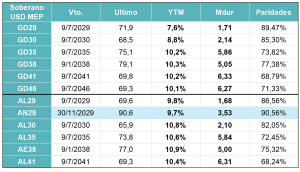 De las dos referencias mencionadas, entendemos que la más exigente era el pricing, porque implicaba colocar muy por debajo del nivel que marcaba la curva de activos hard dollar ley local operados en MEP. El margen buscado estaba más de 1 punto por debajo del nivel previo de la curva.
