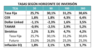Si miramos el nivel de tasas según horizonte de inversión, el premio en la tasa fija aparece recién a partir de los 90 días de plazo, ya no en 30 días como pocas semanas atrás.