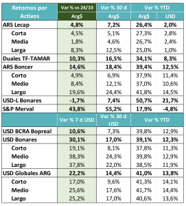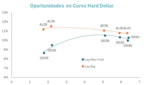 La curva de Globales tiene pendiente positiva y eso es algo que no se había visto en el último tiempo. Desde los fundamentos eso implica que los inversores han bajado fuertemente la probabilidad de dificultades de pago en el corto plazo. El Apoyo del Tesoro de Estados Unidos se refleja claramente en esa pendiente. Ahora el mercado espera el reacceso al mercado para avanzar un nuevo escalón.