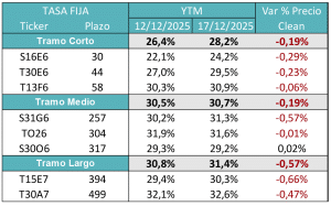 La expectativa es que, con este nuevo enfoque, se pueda destrabar alguna operación financiera (¿Repo?) que alcance para afrontar los pagos de deuda de enero sin necesidad de tener que volver a recurrir al swap del tesoro de Estados Unidos. Si esto se logra, la deuda local puede entrar en un sendero de optimismo más marcado que le ayude a seguir bajando el riesgo país. En ese caso el valor seguirá estando en el tramo largo y eventualmente en la parte corta Ley Argentina.