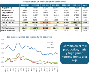 Muy buenas noticias en términos de producción, con condiciones climáticas favorables ( niña débil con reservas hídricas), pero con precios que siguen afectados. En términos de valor de producción el incremento se acerca a los USD 2.000 millones.