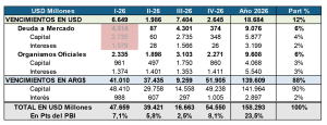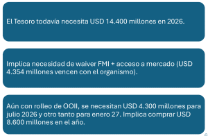 La deuda del Tesoro en moneda local implica vencimientos hacia adelante por el equivalente a USD 200.000 millones. El equipo económico tiene bien claro que hay una ventana de tiempo en 2027 donde el rolleo puede ser más complejo. Eso ya lo está teniendo presente y busca acomodar vencimientos con tiempo para poder transitar ese período sin stress.