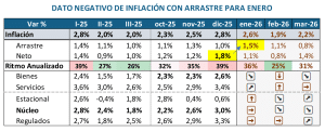 La suba viene dada principalmente por servicios y transporte, pero alimentos también se mantiene alto. El problema del 2,8% de diciembre es que deja un efecto arrastre muy alto para enero, que también apunta a cerrar con valores similares.