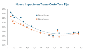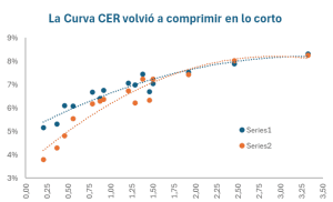 El mercado corrigió expectativas, con cifras más altas de inflación esperada y eso se traslada a bandas y a tasas de interés. Si bien no cambió el CER largo, el segmento de Tasa Fija se desplazó un escalón hacia arriba.