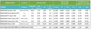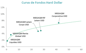 MEGAQM Latam Corpo USD: Sigue parámetros similares al fondo Latam, pero acota su cartera a activos de riesgo privado. Eso hace que se deba gestionar con niveles un poco más altos de liquidez.
