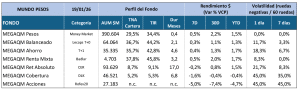 MEGAQM Balanceado: El instrumento que captó más rápido el movimiento de las tasas fue el fondo de Lecaps, que con su posicionamiento corto y en títulos migró rápidamente hacia los nuevos valores y se convirtió nuevamente en una opción válida para los que necesiten hacer devengamiento de corto plazo y tengan un horizonte de inversión algo más largo, que les permite correrse del money market.