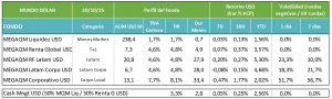 MEGAQM LATAM CORPO: Este fondos complementa al anterior, con una estrategia similar, pero sin activos soberanos. Se enfoca exclusivamente en riesgo privado. Para poder gestionarlo de manera adecuada se requiere una liquidez mayor, pero logra igual muy buenos rendimientos.