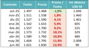 El mercado sigue poniendo en precios un movimiento del tipo de cambio luego de las elecciones. Los contratos de futuro y las Lecaps operan claramente por arriba del techo de la banda.