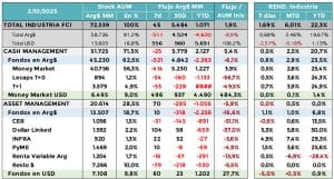 En las últimas semanas, con el BCRA bajándole el precio a la liquidez diarias y con un reordenamiento de tasas, donde los bancos (incentivados por los encajes), volvieron a pagar por depósitos a plazo fijo, los flujos retornaron a la industria de FCI. Los Money Market con rendimientos claramente por encima de cuentas remuneradas y de caución generaron ese incentivo. También se nota un flujo creciente hacia los fondos con altos niveles de dolarización de carteras o de cobertura dollar linked.