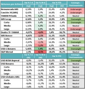 En el segmento de tasa fija priorizamos las posiciones cortas para minimizar volatilidad, en CER el tramo medio por el nivel de tasa real que ofrece. En todos los casos creemos conveniente armar carteras con alto grado de cobertura.