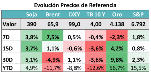 Noticias positivas de acuerdo comercial entre CHN y USA avalan repunte de commodities y de renta variable. Positivo para Argentina que se hayan recuperado la soja y sobre todo el petróleo, que volvió a operar arriba de los USD 65.