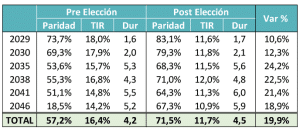 En las primeras horas post elección, ya están operando a 5 puntos del piso de enero 2025. La consolidación de esta dirección se debería dar en las próximas semanas en la medida que se vaya estabilizando el mercado cambiario y se terminen de conocer algunas decisiones.